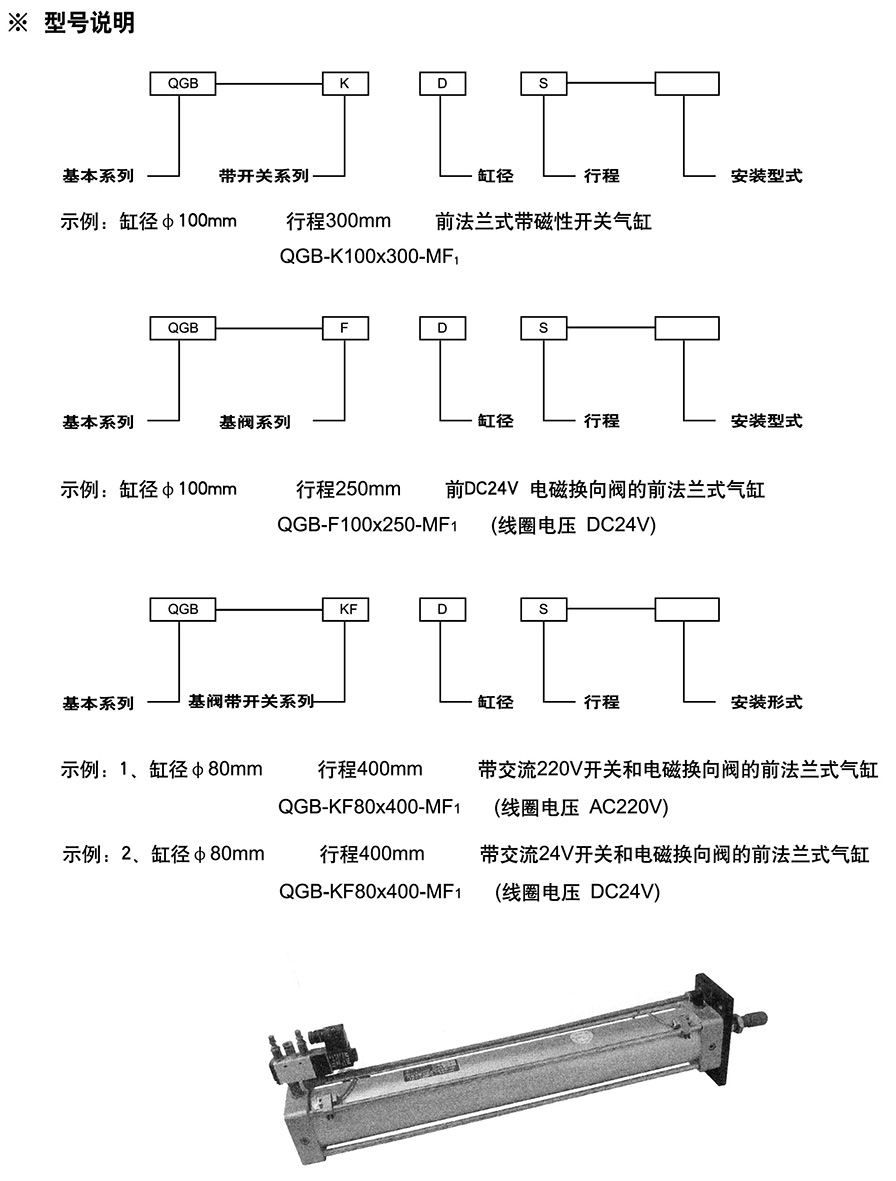 当前产品:QGB-K、QGB-F、QGB-KF带开关、带阀气缸